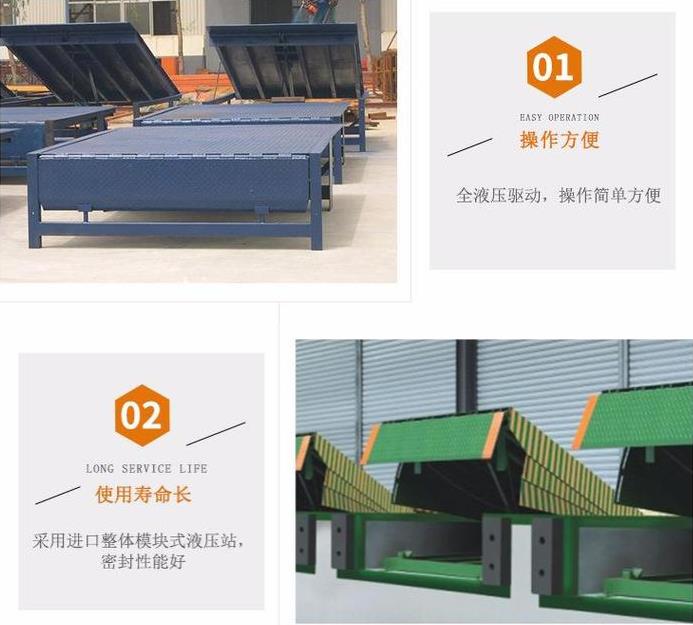 1、固定式登車橋電動液壓高度可任意調(diào)節(jié) ,提高裝卸效率的液壓固定式登車橋,采用全液壓驅(qū)動,操作方便運行可靠。